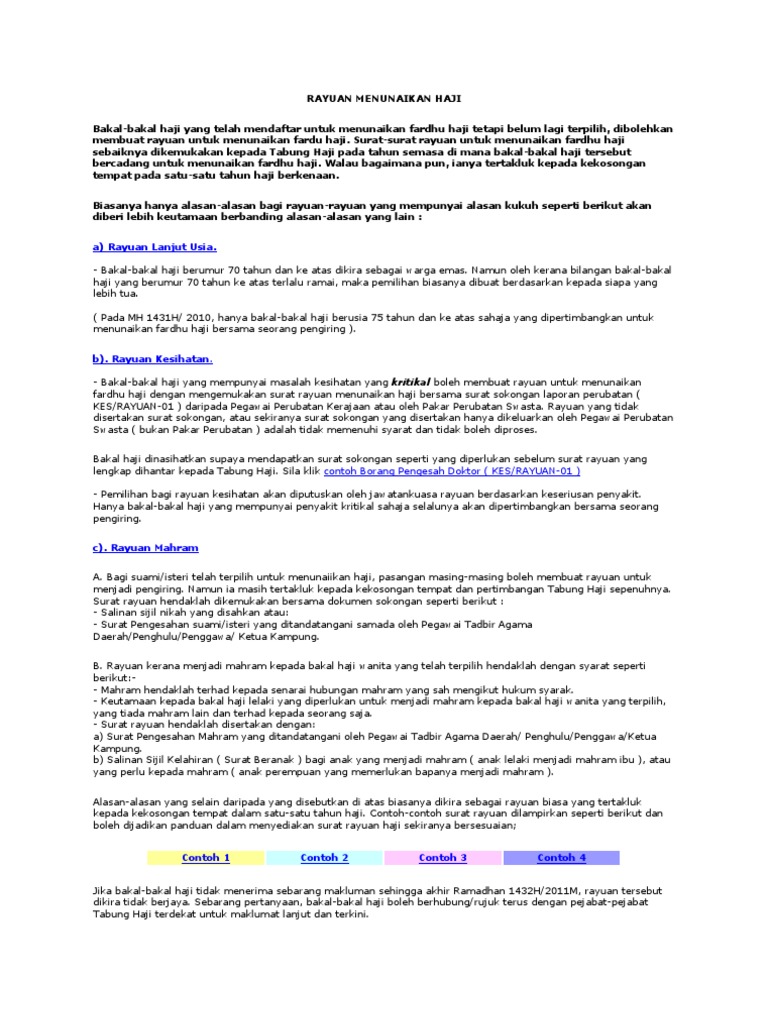 Rayuan Haji 2018 Dibuka : Muat turun borang permohonan terkini :. Download surat rayuan haji.doc (microsoft word). Berita baik buat pendeposit tabung haji (th)! Permohonan rayuan haji tahun 2021 kini boleh dibuat secara online melalui aplikasi (resolusi muzakarah haji peringkat kebangsaan tahun 2005, 2008, 2011, 2016, 2018 dan 2019). Justeru itu, kami memohon dan merayu jasa baik pihak tuan untuk memperoleh penempatan ibadah haji pada tahun 1438h/2018 berdasarkan perkara berikut Bank penerima setoran haji yang bekerja sama dengan.